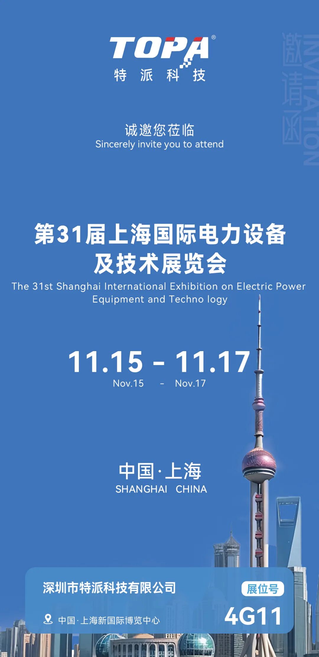 【11.15-11.17】TOPA特派邀您参加第三十一届上海国际电力设备及技术展览会